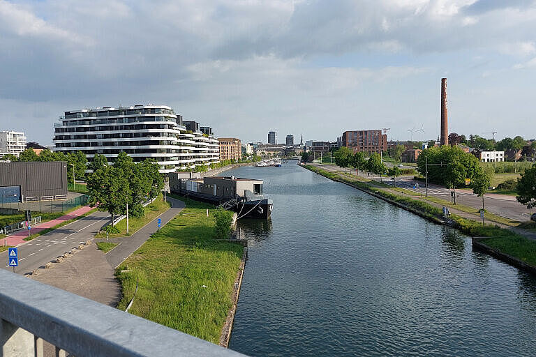 Der Albertkanaal führt an Hasselt vorbei Richtung Norden nach Antwerpen. Radschnellwege gibt es in ganz Flandern, dem nördlichen Teil Belgiens, zum Beispiel Richtung Brüssel, Richtung Nordsee mit Brügge und Ostende und noch weiter nach Westen an die französische Grenze nahe Dunkerque.