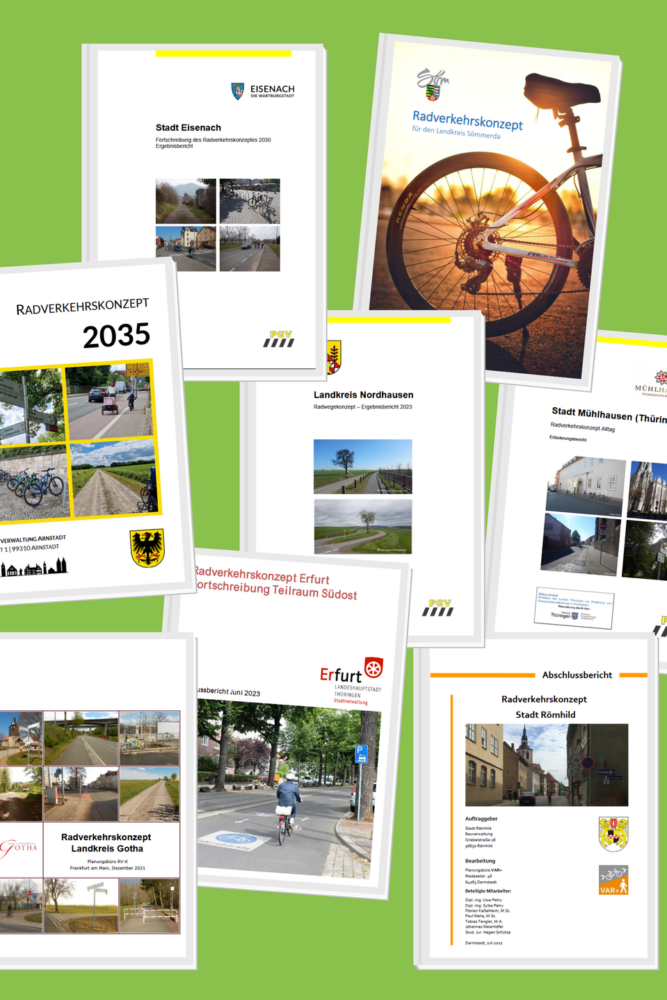 Viele Landkreise und Kommunen in Thüringen verfügen bereits über ein Radverkehrskonzept. Hier sind die uns bekannten Konzepte der Landkreise in einer Übersichtskarte aufgeführt. Die folgende Übersicht zeigt die seit 2021 veröffentlichten Konzepte nicht nur der Thüringer Landkreise, sondern auch von Thüringer Kommunen (die Auflistung erhebt keinen Anspruch auf Vollständigkeit):