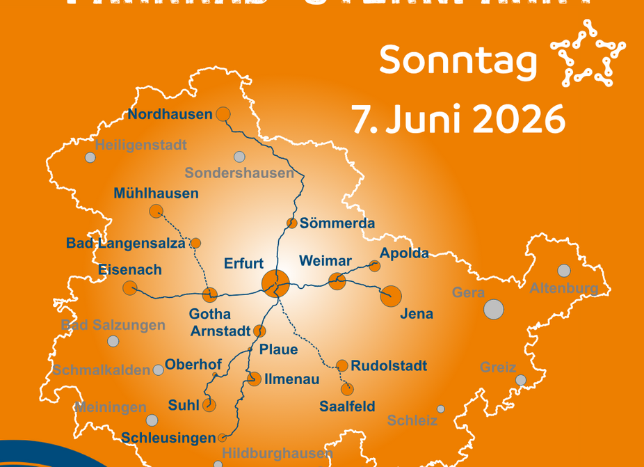 Wir lieben Radfahren - deshalb fahren wir am 7. Juni 2026 gemeinsam nach Erfurt, genießen einen Tag “freie Fahrt” auf Thüringer Straßen und überbringen der Landesregierung die Forderung, mehr für sicheres und komfortables Radfahren zu tun.