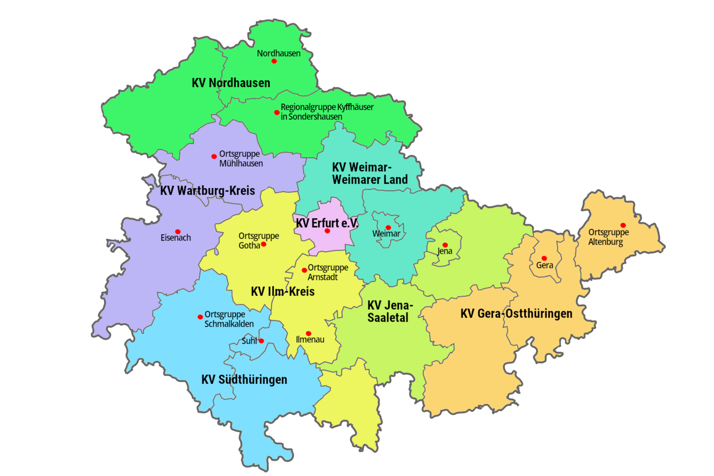 - Kreisverband Gera - Ostthüringen (betreut Gera, Altenburg, Greiz und Saale-Orla-Kreis)