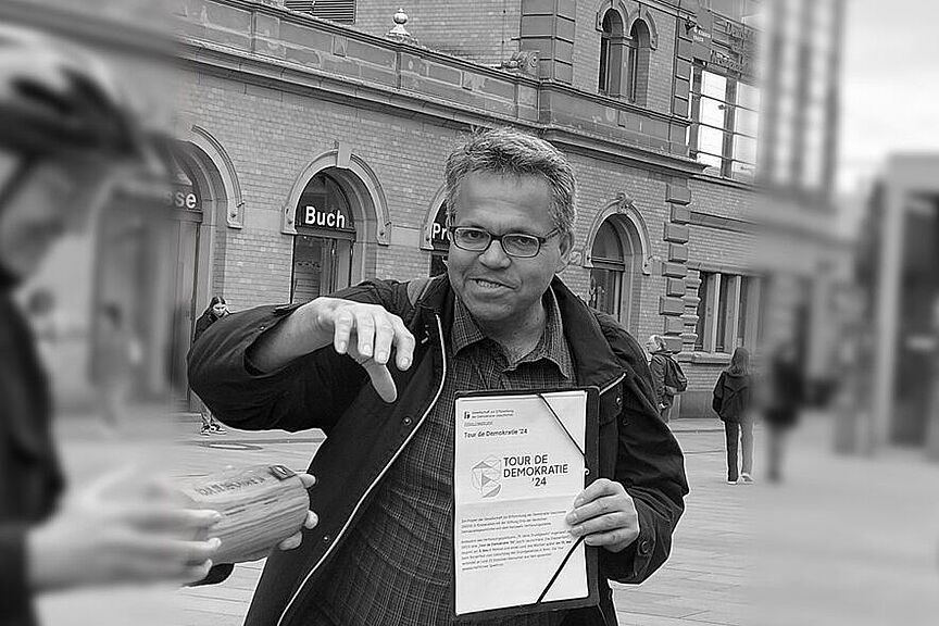 Wenn Lars in der Geschäftsstelle vorbeischaute, geschah das jedes Mal mit einem Lächeln, mit einer neuen Idee, mit einem Dank für die bereitstehende TourGuide-Tasche oder den letzten Newsletter. Wenn Lars sagte: „Ich kümmere mich darum“, dann wussten wir: Wir können uns darauf verlassen, dass es gut wird. Denn egal, ob „Tour de Demokratie“, musikalische Reise mit Pygmalion im Rahmen der Bach-Wochen oder Wochenendradtour – Lars war gut vorbereitet und ein zuverlässiger Leiter und ausgesprochen angenehmer Begleiter, ansteckend mit seiner Kulturbegeisterung und so vielseitig interessiert! In unserer AG Tourismus war er präsent mit seinen Anregungen, blieb dran, wenn es um Streckenverbesserungen ging, und brachte Menschen zusammen, die solche Verbesserungen gemeinsam erreichen könnten. Gerade erst hatte Lars eine Streckenpatenschaft übernommen und seine TourGuide-Ausbildung gemacht, und wir hatten uns eingestellt und gefreut auf viele kommende Jahre des gemeinsamen Wirkens. Und dann der Anruf: Lars ist tot, verunglückt beim Wandern in den Bergen.