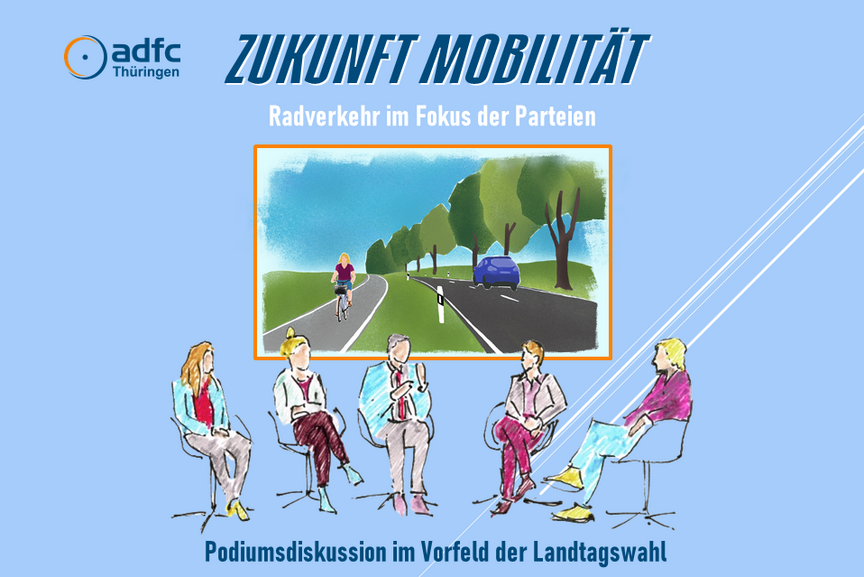Wie soll sich der Radverkehr in Thüringen in der neuen Legislaturperiode entwickeln? Mit einer Podiumsdiskussion gibt der ADFC Thüringen den aktuell im Thüringer Landtag vertretenen demokratischen Parteien Gelegenheit, ihre Standpunkte darzulegen.