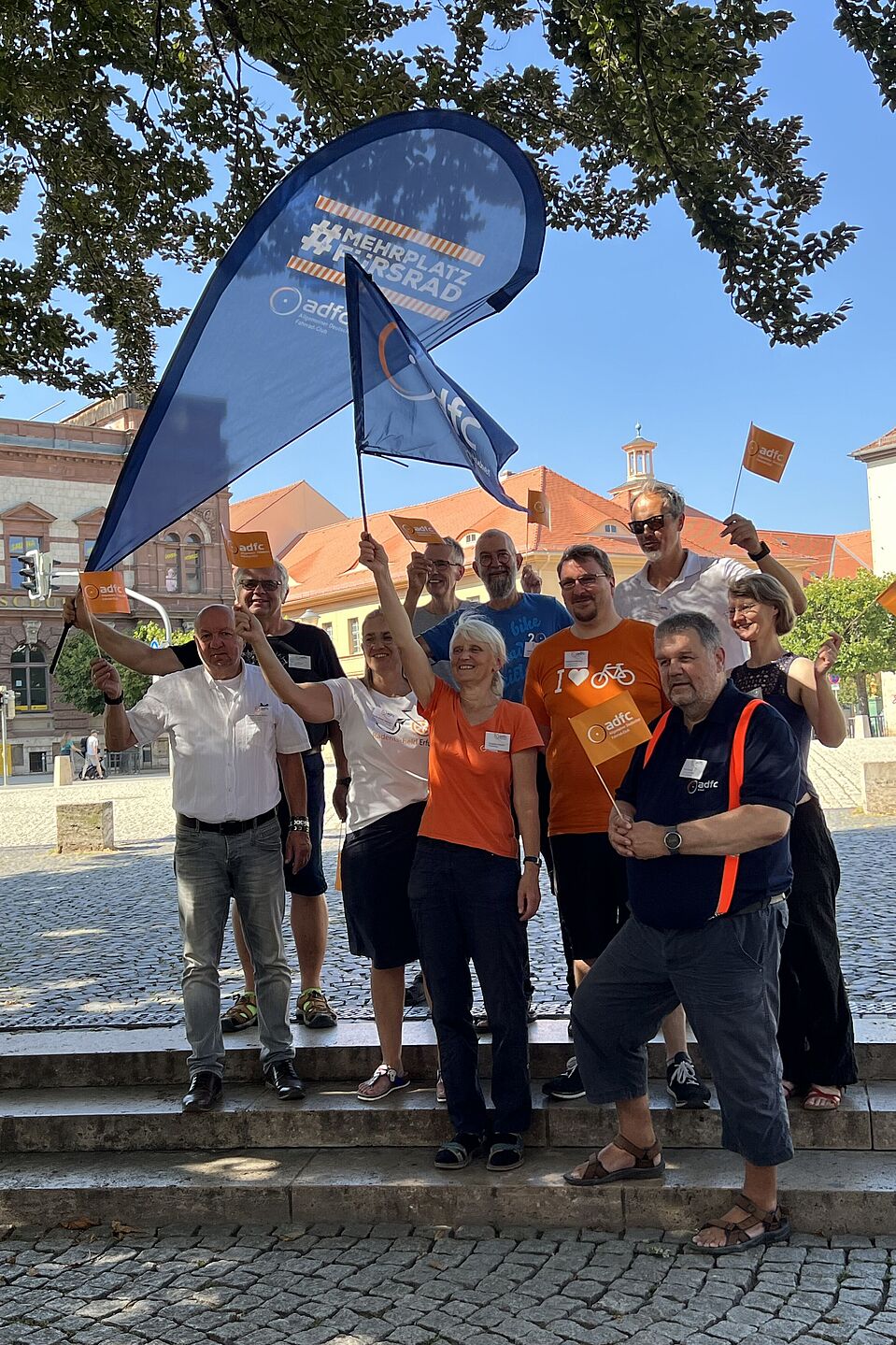 Mit Blick auf die bevorstehenden Landtagswahlen war eine familienfreundliche Fahrraddemonstration zum landesweiten Aktionstag „Weltoffenes Thüringen“ Teil der Versammlung. Dr. Caroline Lodemann, politische Bundesgeschäftsführerin des ADFC, war angereist und ließ die wissenschaftlich nachweisbar erreichbare Vision einer Verdreifachung des Radverkehrs lebendig werden. Anne Bellmann, im Tiefbauamt der Stadt Weimar für die Verkehrsplanung zuständig, betonte die Bedeutung des ADFC als Vertretung der Radfahrenden gegenüber Politik und Verwaltung und für die Schaffung einer positiven Radfahrkultur. Thilo Braun, Co-Vorsitzender des ADFC Thüringen, stellte klar, dass das ehrenamtliche Wirken des Vereins nur auf der Basis von Demokratie und Achtung der Menschenrechte möglich ist.